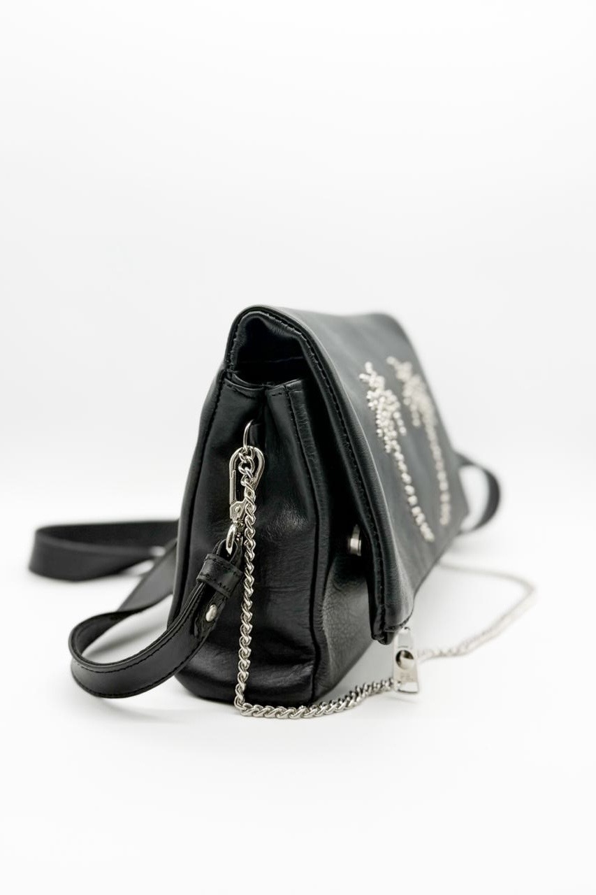 Tira desmontable de cuero fija con mosquetón para cruzar tipo bandolera.