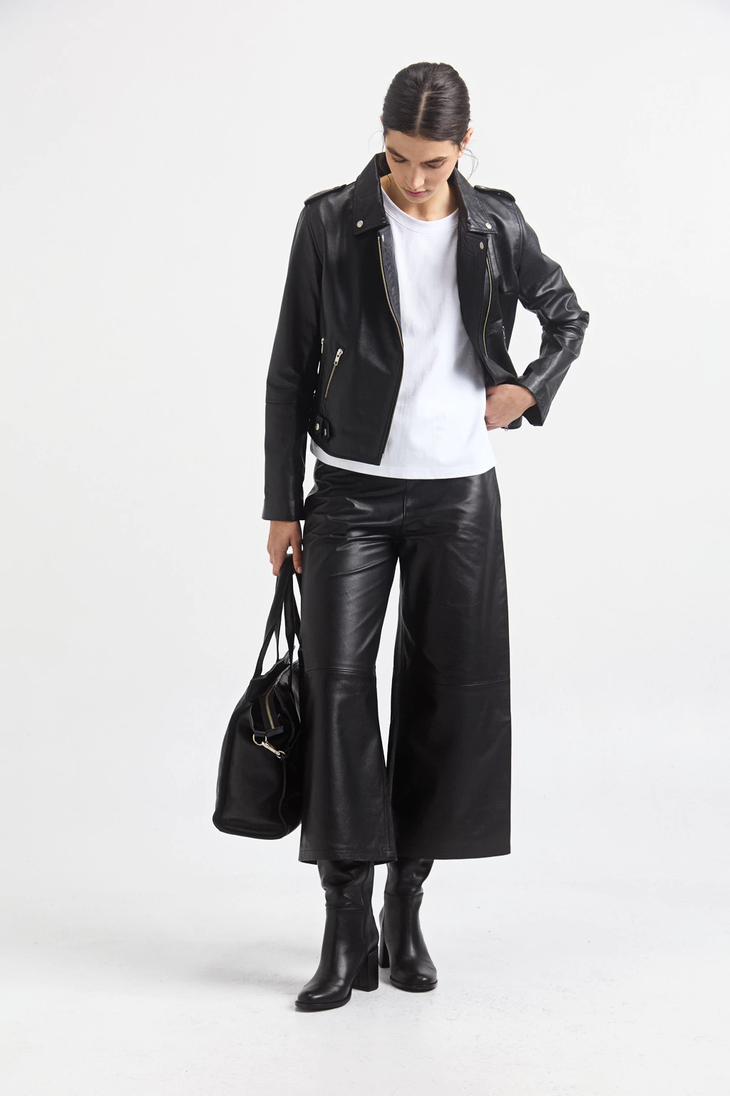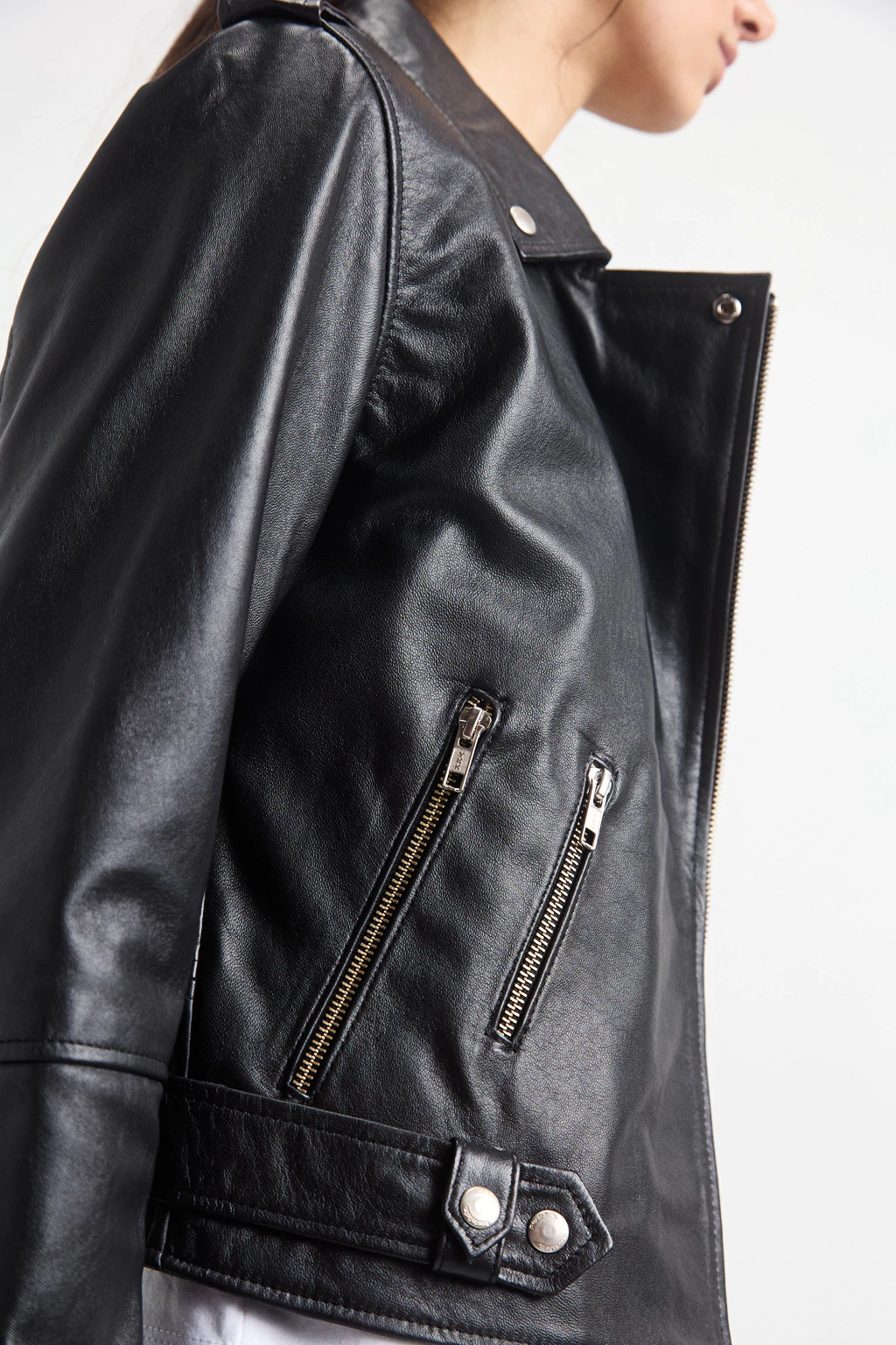 La Campera Rita esta confeccionada en cuero de oveja, es la fusión perfecta entre elegancia y confort. Con presillas en los hombros y un sofisticado cuello camisa, esta campera entallada realza la silueta femenina.